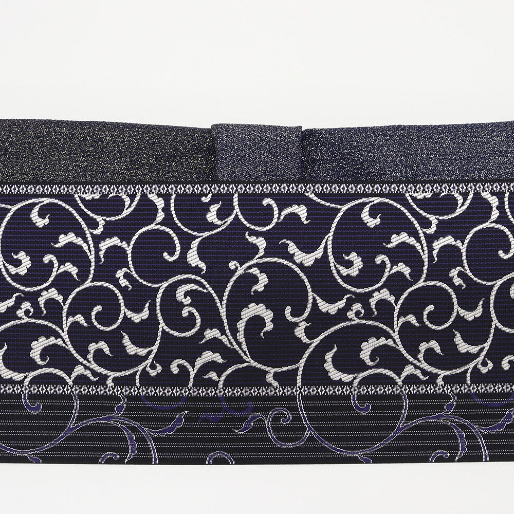 銀糸混じりはネイビーに、金糸混じりはブラックにに見える、錯視を利用した不思議な仕上がりは、ぜひお手元で見比べてみていただきたいひと品です。
