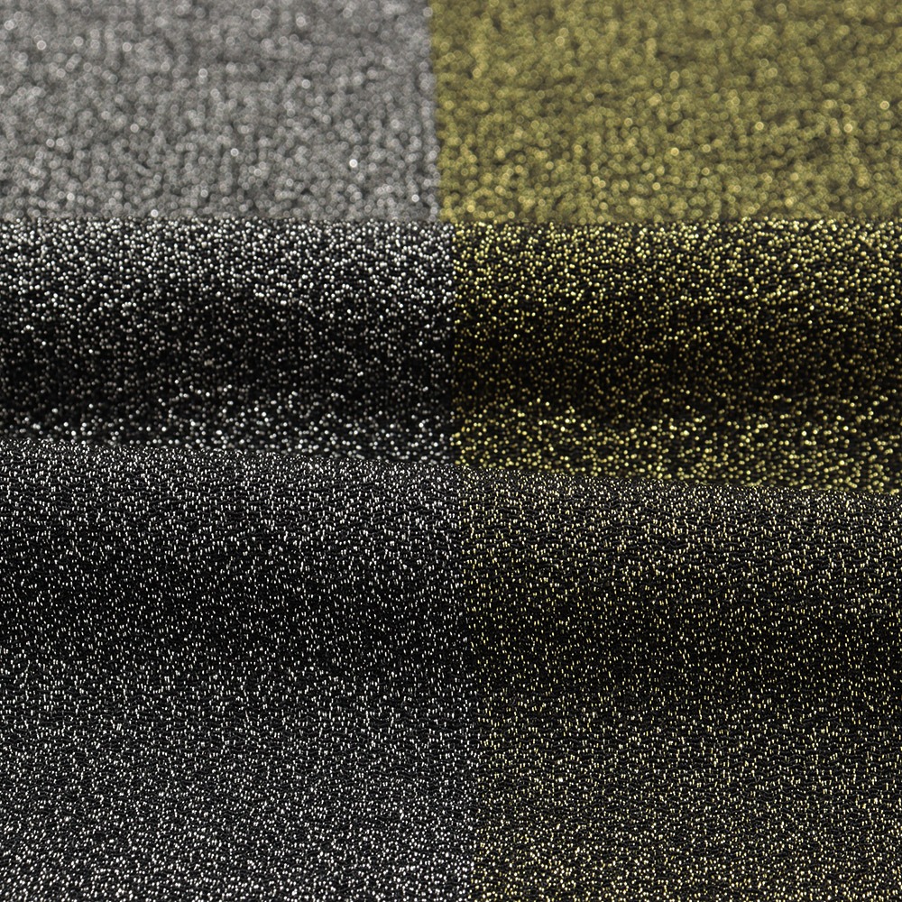 銀糸混じりはダークグレーに、金糸混じりはブラックにに見える、錯視を利用した不思議な仕上がりは、ぜひお手元で見比べてみていただきたいひと品です。