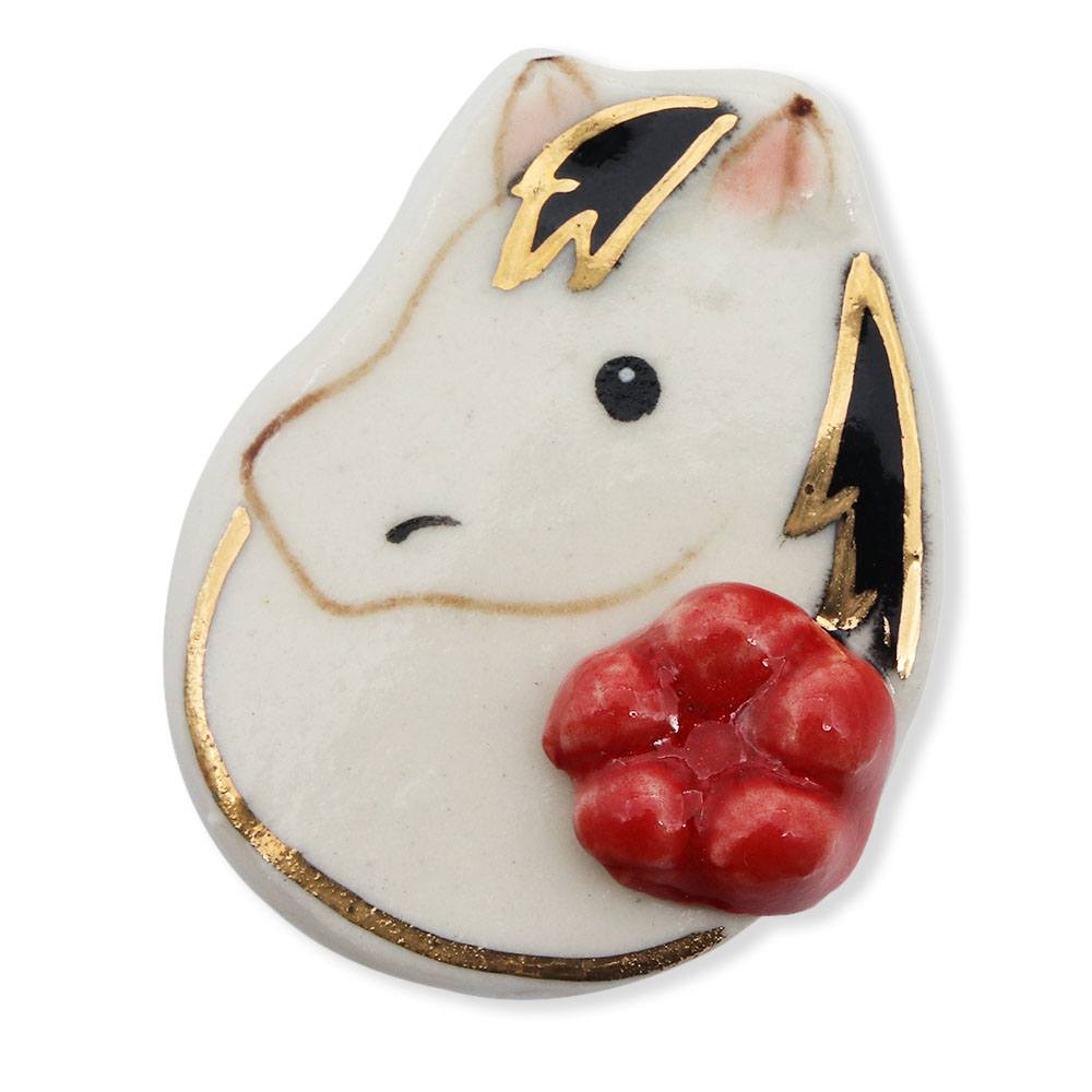 清水焼帯留(黒午/赤梅)【馬籠静】