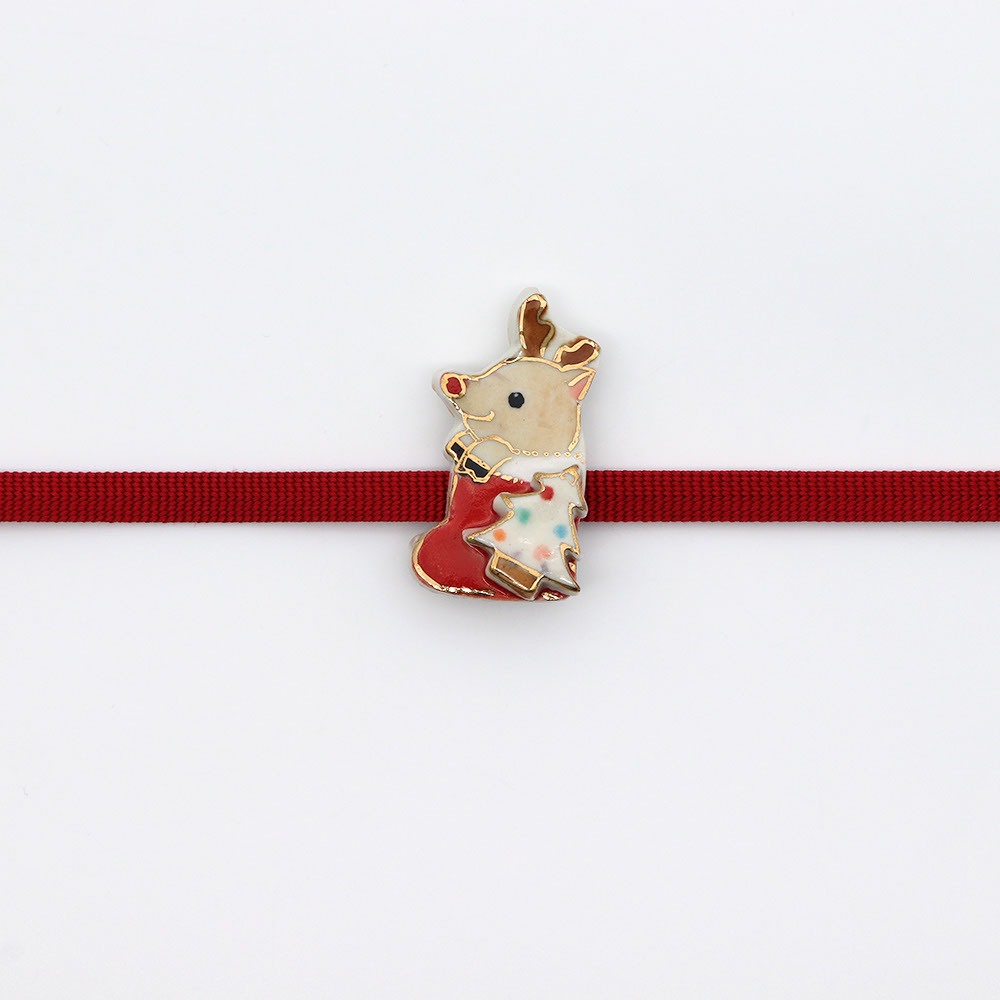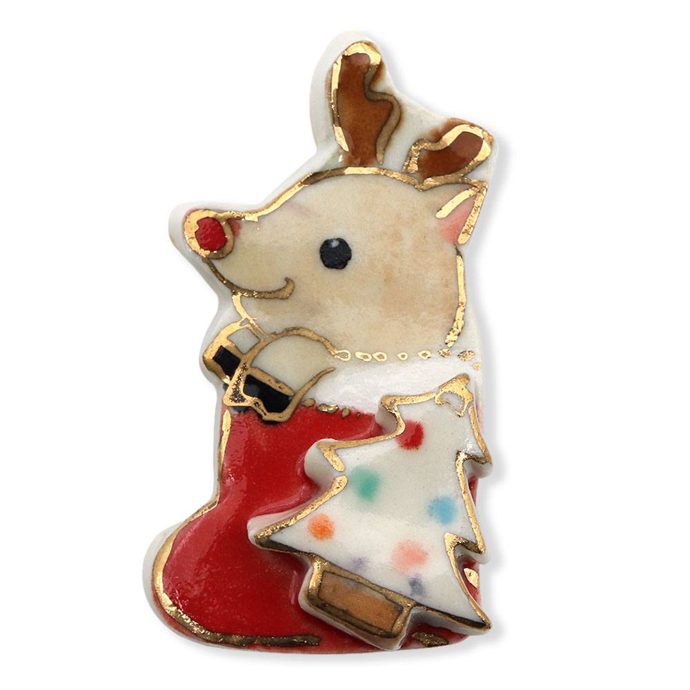 クリスマスブーツに入り込んで、ひょっこり顔を出すトナカイの帯留。有名なあの歌の通り、真っ赤なお鼻が可愛らしいですね♪