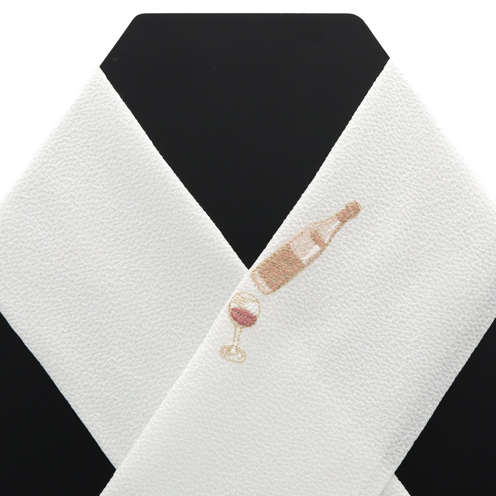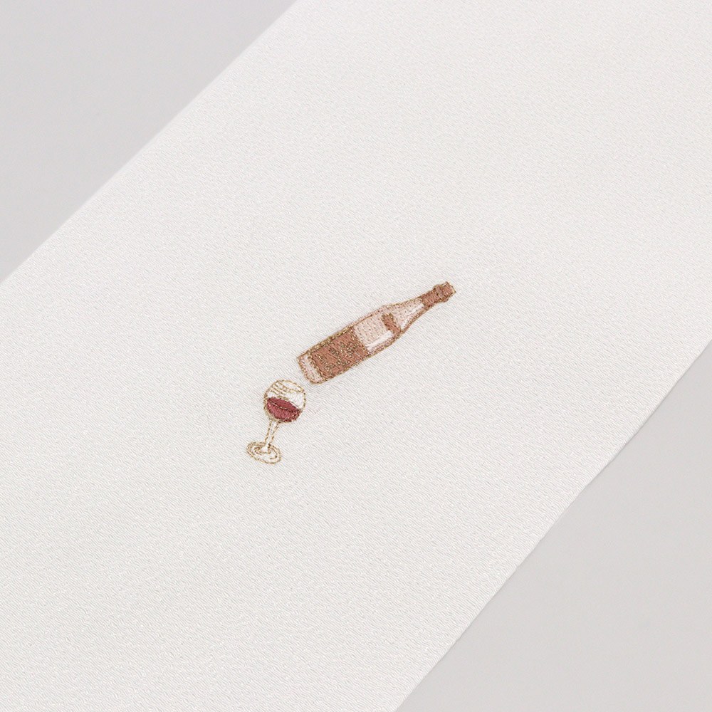 シボの大きめなちりめん生地に、ワインボトルとグラスを刺繍した大人可愛いデザイン。