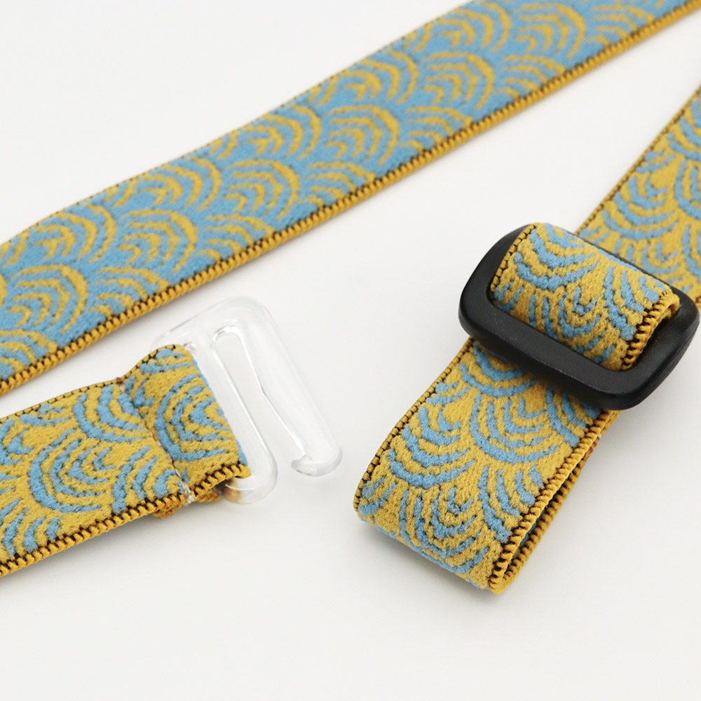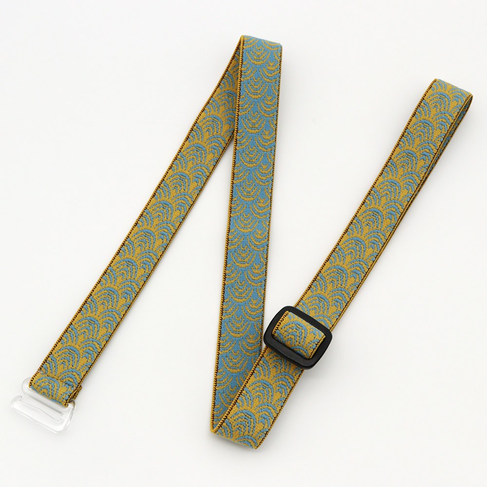 安定感のある紐幅と伸縮性で、帯結びをサポートするアイテムです。仮紐ではありますが、使うたびに気分があがるレトロな青海波をデザインしました。