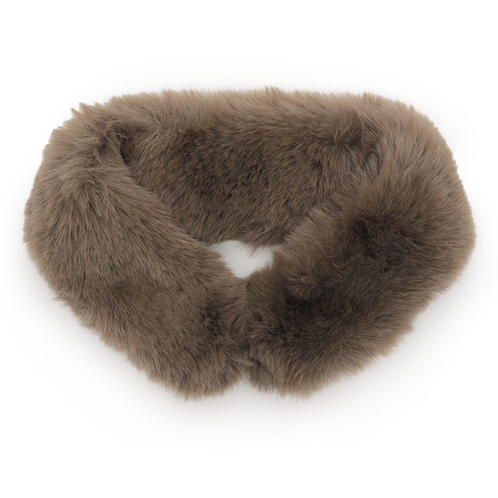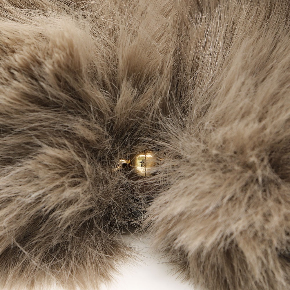 手触りが心地よいふわふわのフェイクファーを使用。ほどよいボリューム感で、首元を暖めつつ、顔周りを華やかに飾ってくれるアイテムです。