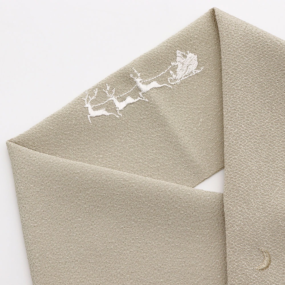 衣紋には、トナカイが引くそりに乗ったサンタさんを刺繍。チラリと見えたときにもアクセントとなって、さりげなくクリスマスの雰囲気を盛り上げてくれることでしょう。