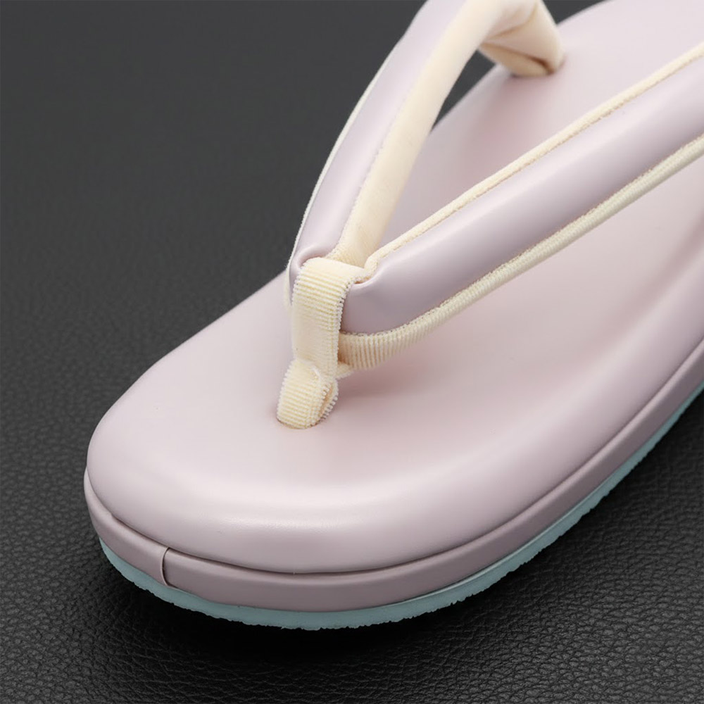 鼻緒裏・前ツボはフワリとした生地を採用し、肌当たりの負担を減らします。