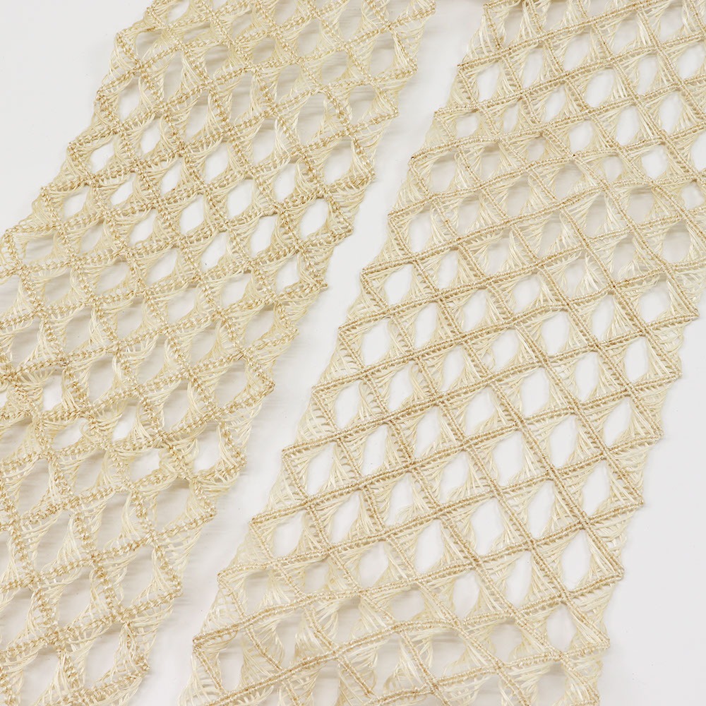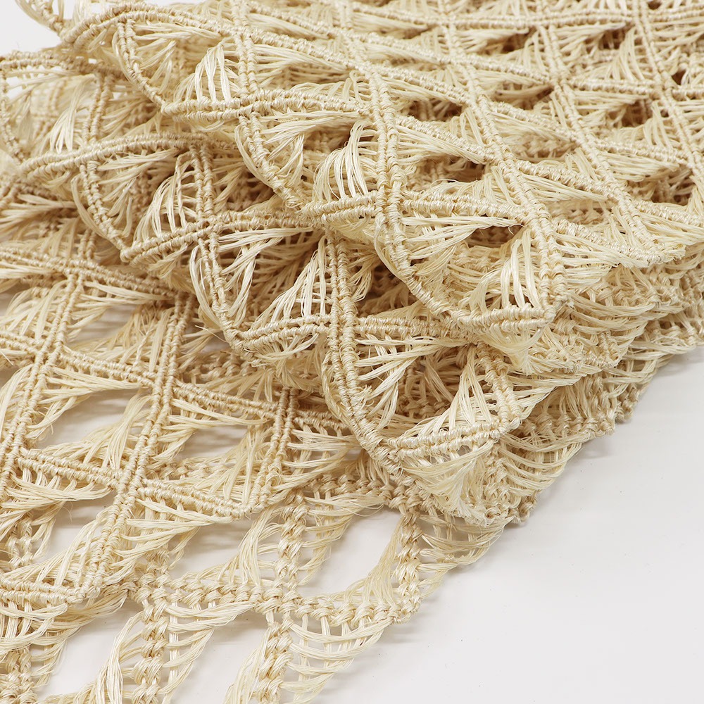 大きく透け感をとった角繋ぎの繊細な意匠が、バケーションスタイルにもシティライクにも似合う、トレンド感のあるコーディネートへ導きます。