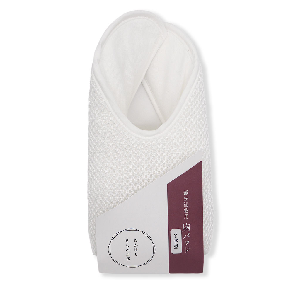 着物ユーザーから圧倒的支持を集める【たかはしきもの工房】の補正パッド。胸元のくぼみが気になる方におススメしたいY字型の胸パッドです。