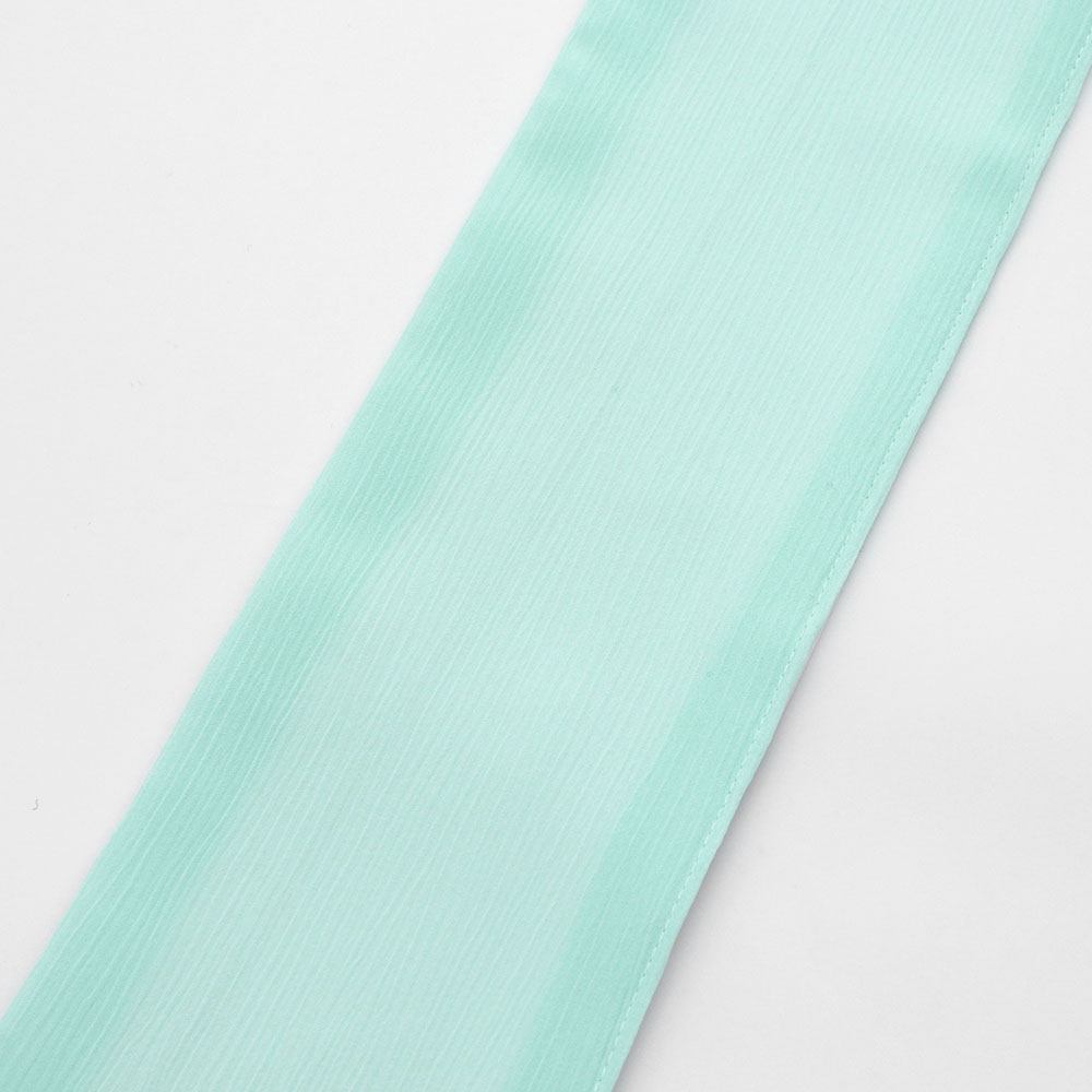 アクアブルーの楊柳生地を使用した一本。さらりとした生地感に爽やかな色合いで衿元や顔回りを明るく引き立ててくれるでしょう。