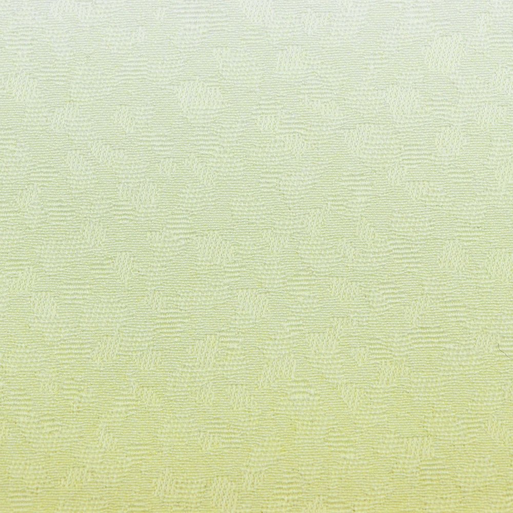 腕側に青緑、振り側に黄色を配し、ぼかしデザインを表現。ポリエステル地の軽やかな装いを楽しんだ後は、自宅でお洗濯ができるのも夏に嬉しいポイントです。