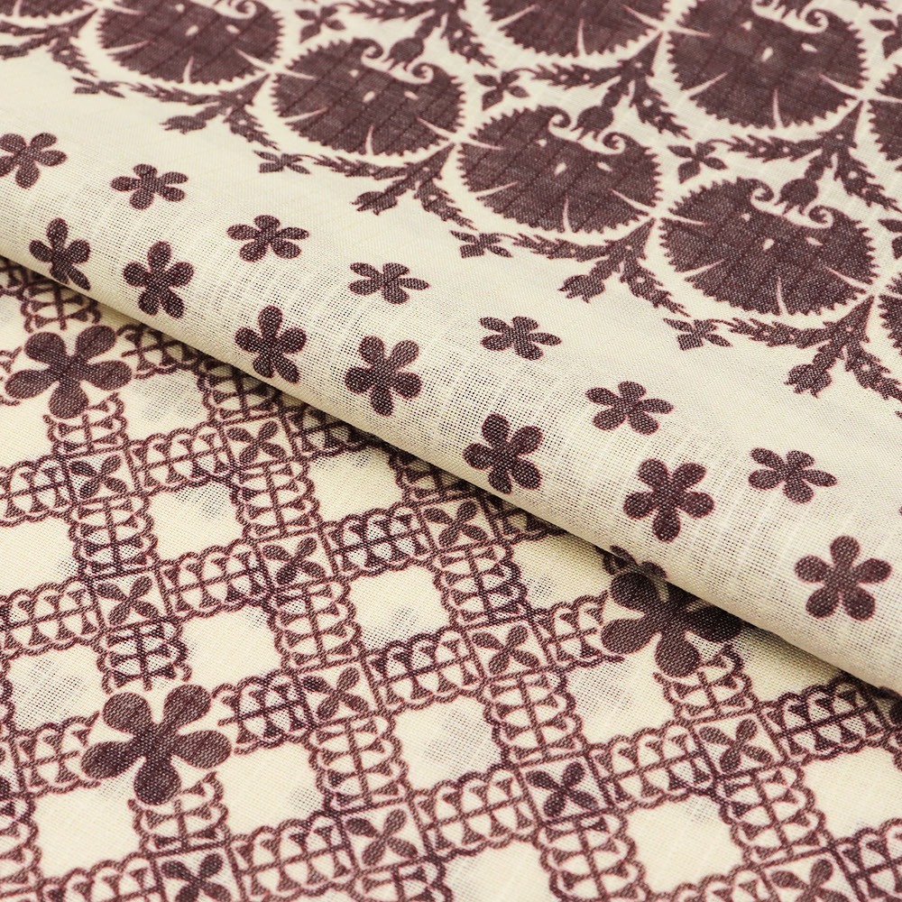 レースのような繊細な模様と、ベージュ×レッドの色合いがエキゾチックな仕上がりです。