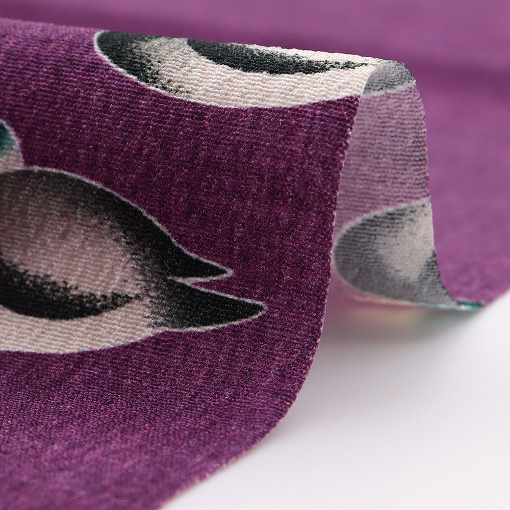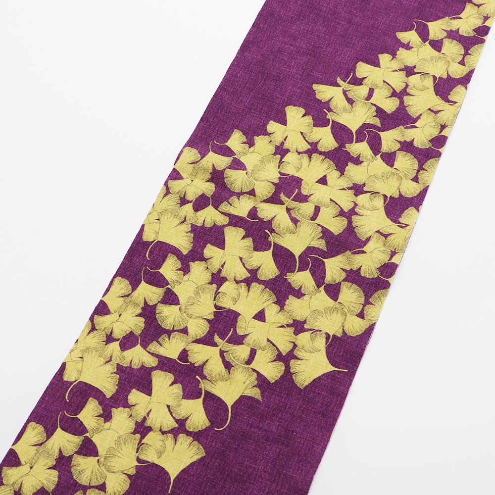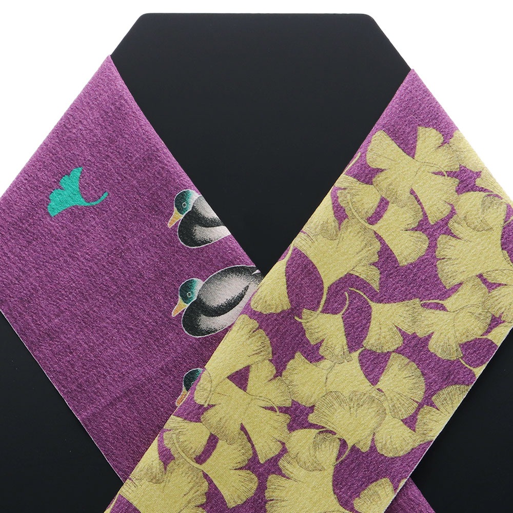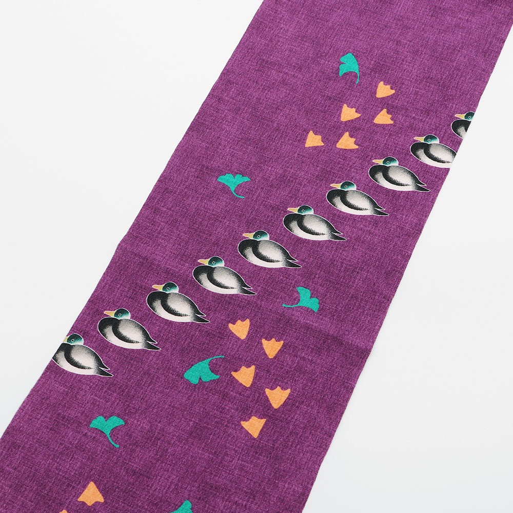 また、ポリエステルなのでデザインの幅もグッと拡大。鴨と鴨の足跡、そしてイチョウの葉を配した個性的な一枚です。