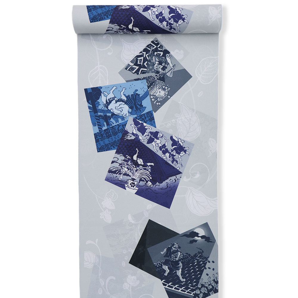 鼠小僧に大相撲や火消しなど、華やかな江戸を象徴するものに扮する猫がユーモラスな一枚。袖口等からチラリと覗いた時にも気分が上がりそうです。