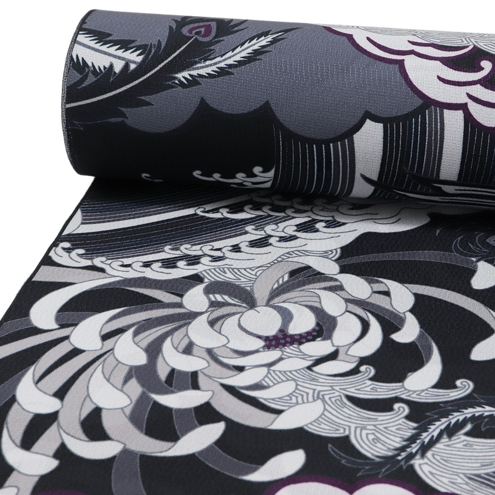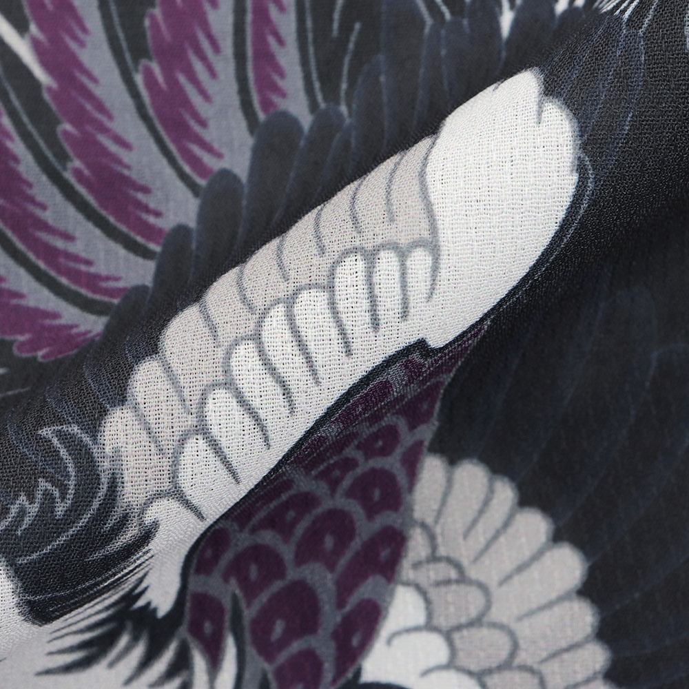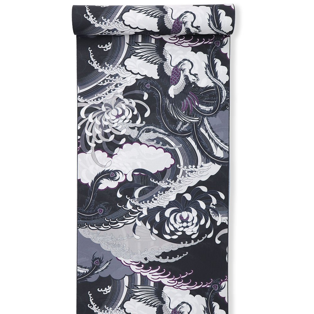 荒れ狂う波と、その波間から羽ばたく鳳凰が描かれた重厚感のある一枚。鮮やかさを抑えたモードなデザインが、袖口等からチラリと覗いた時にも気分が上がりそうです。