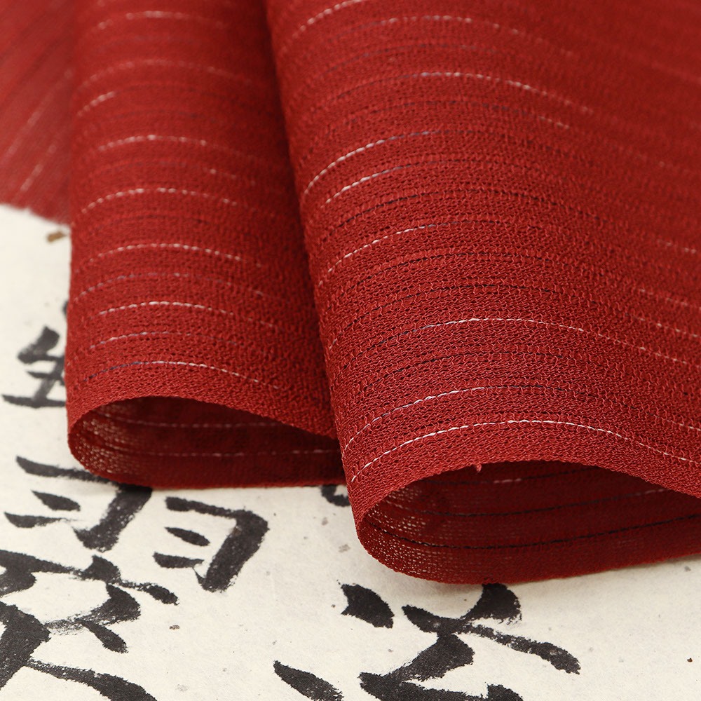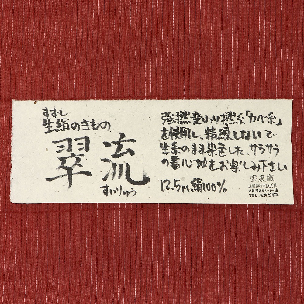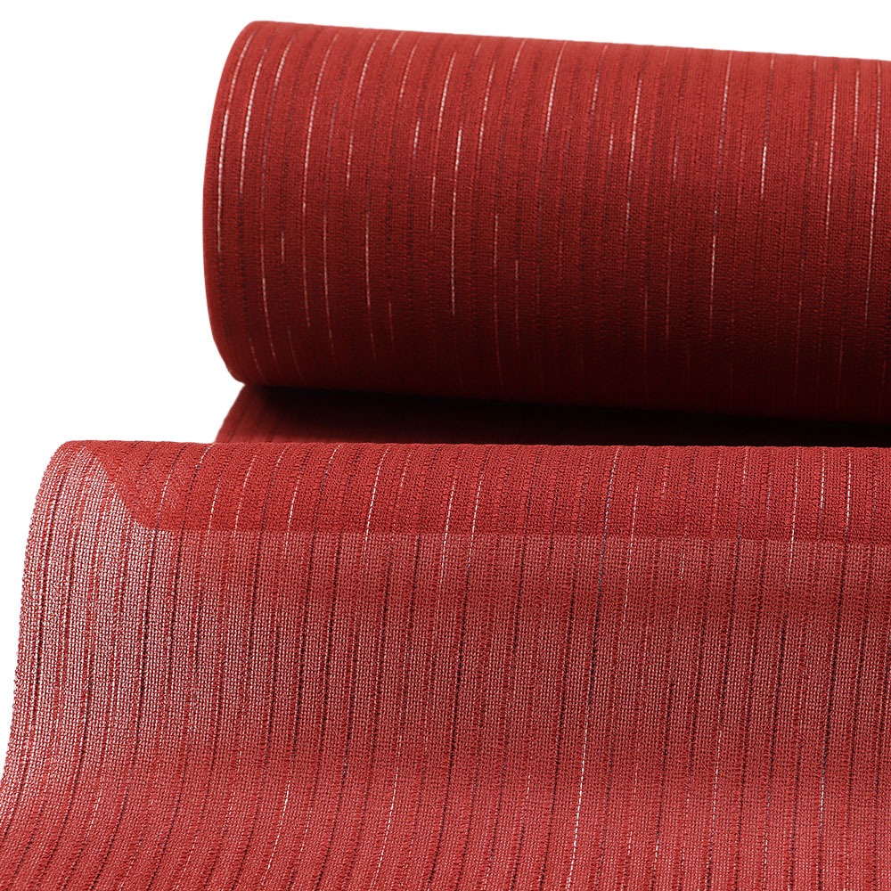 さらに、生絹地なのでシャリ感があり、透け感もあるので夏に活躍する爽やかな質感に。深みのある赤に、織り込まれた箔糸のきらめきがこなれ感のある大人な着姿を演出してくれるでしょう。