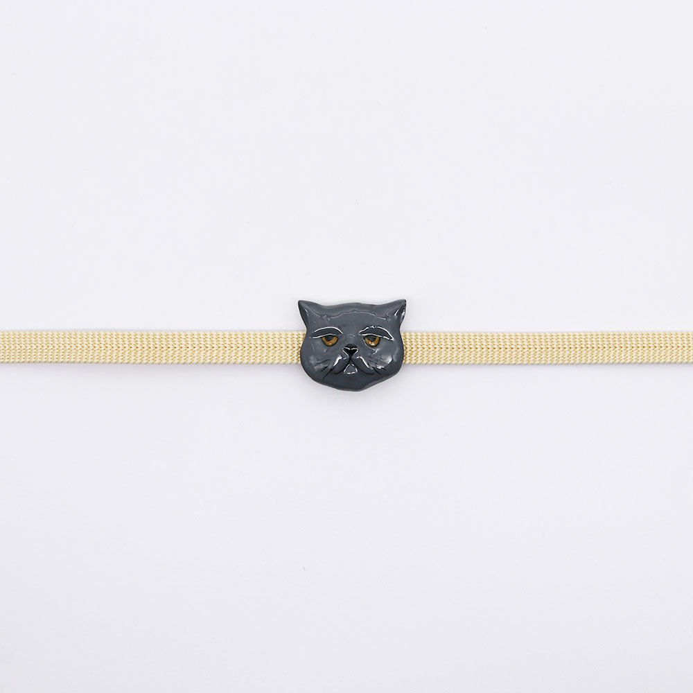 見るほどに愛着が増す、猫のお顔を象った真鍮帯留。