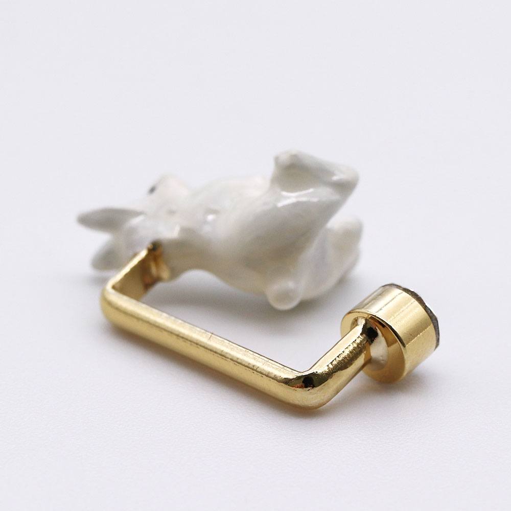 白うさぎモチーフの、真鍮帯留。