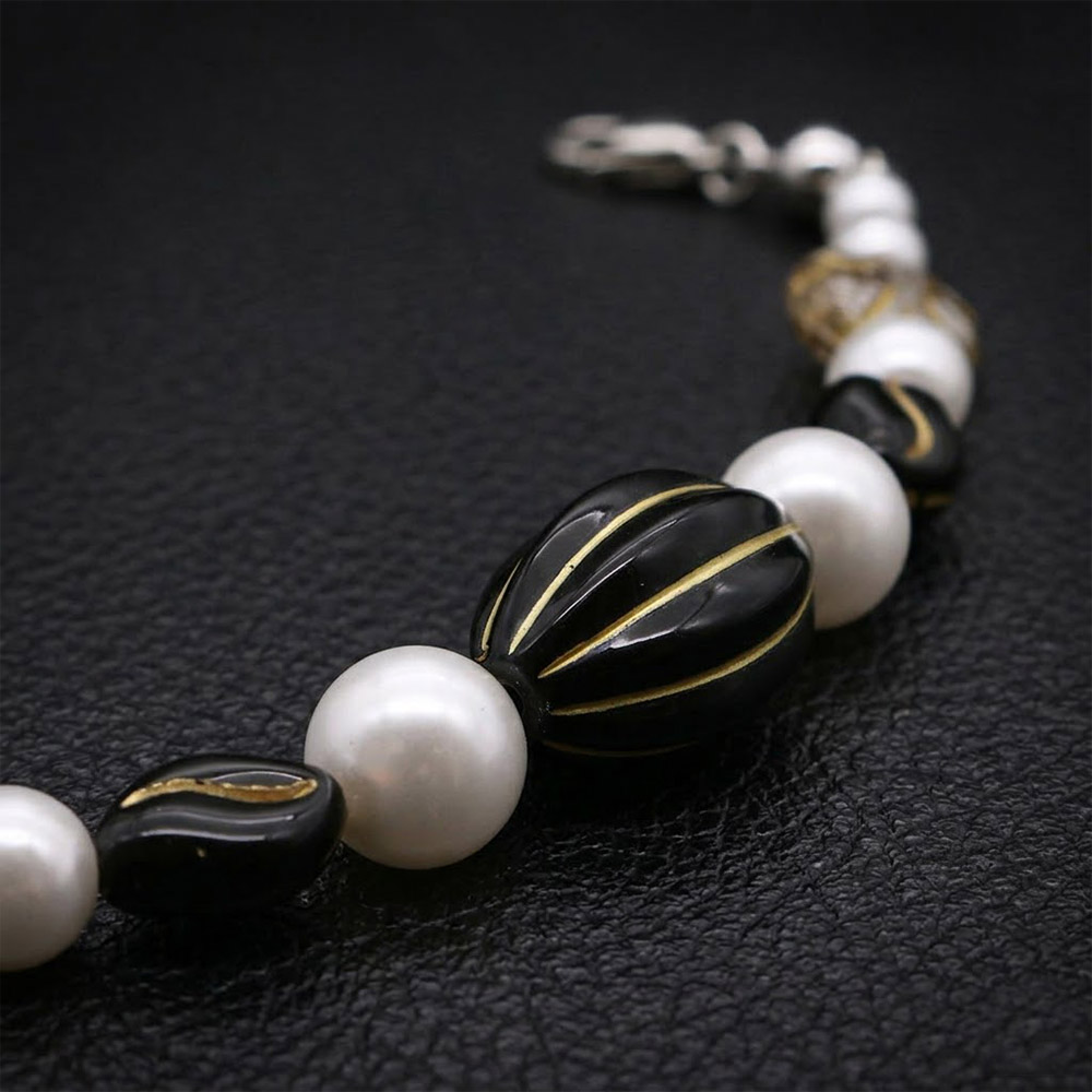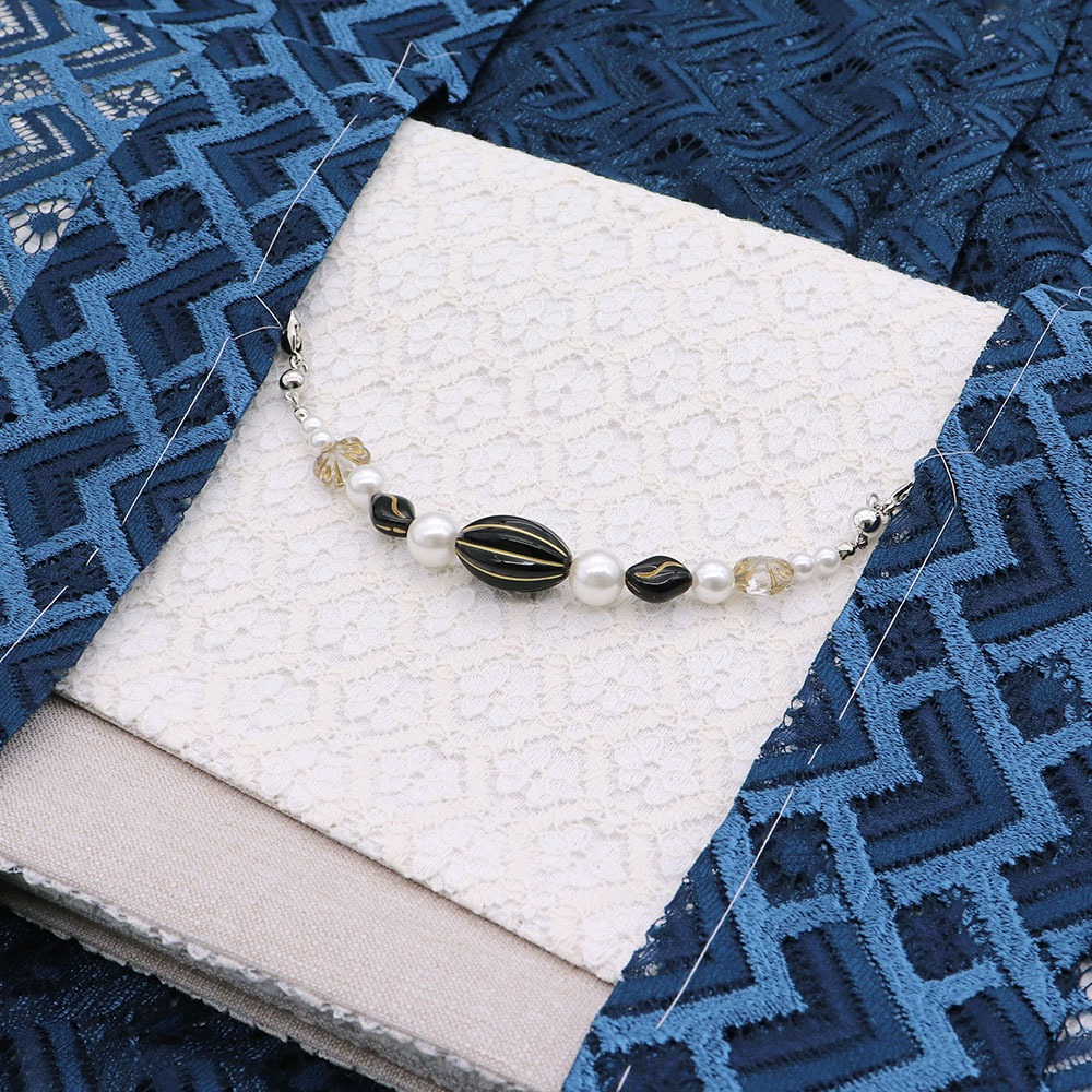 黒と金のアーモンド型パーツと、パールパーツやビーズパーツがシックな一本。異素材を組み合わせたデザインが、帯元で存在感を演出してくれそうです。