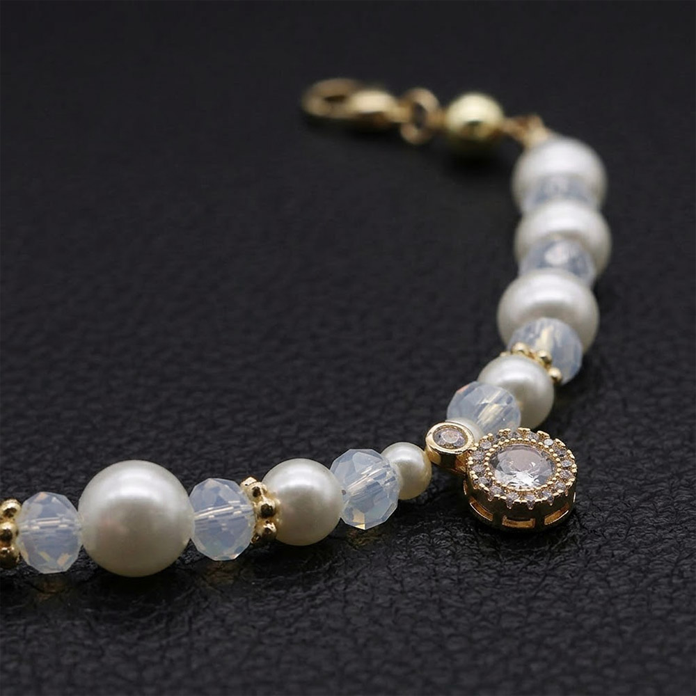 ラインストーンを散りばめたラウンド型パーツと、パールパーツやビーズパーツがジュエリーのような雰囲気を感じさせる一本。異素材を組み合わせたデザインが、帯元で存在感を演出してくれそうです。