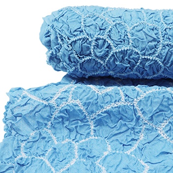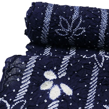 生地には主にシルク、それに合わせてポリエステルとレーヨンを使用し、絹の美しさを損なわず耐久性に優れシワになりにくい、良いとこ取りの仕上がりに。緯糸には箔糸が織り込まれ、微かに煌めいてちょっとした華やぎも感じられます。