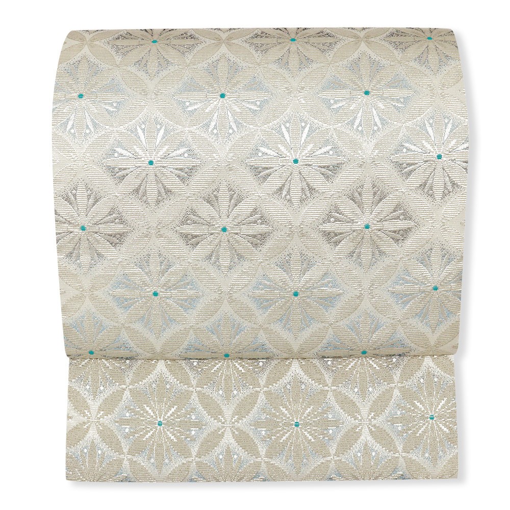 銀糸、箔糸をふんだんに使って織りあげた、グラデーションの美しい花菱模様が存在感をはなちます。