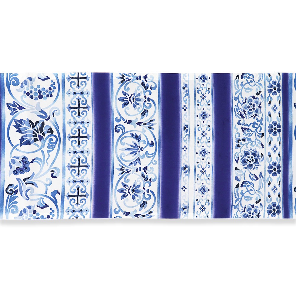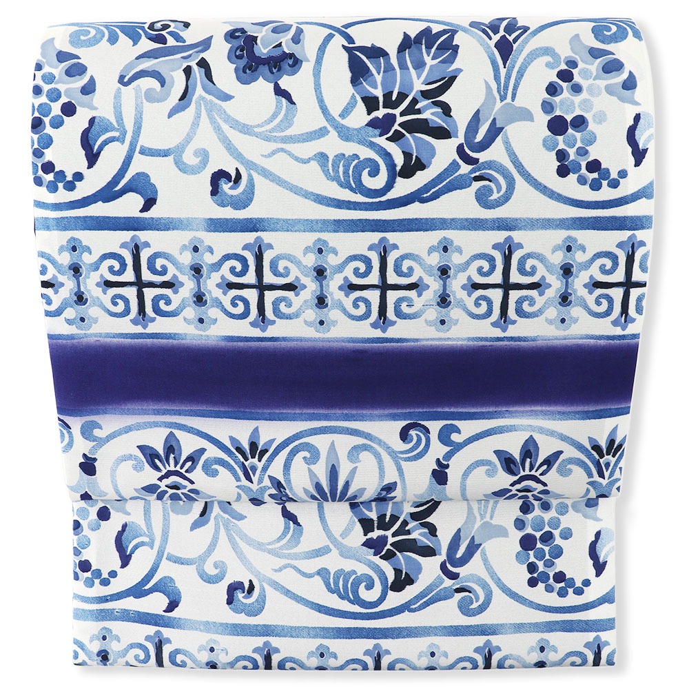 こちらは、藍色を基調に葡萄唐草横段を配した一本。繊細で異国情緒のただようデザインは、その存在感で帯を主役とした個性派コーデにオススメです。