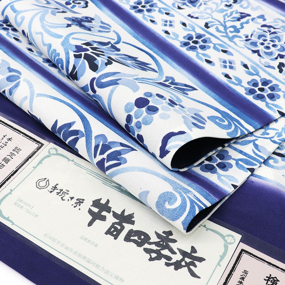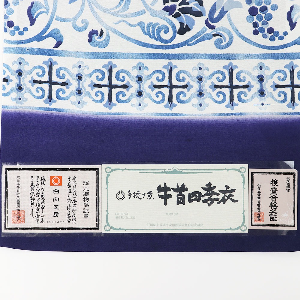 石川県牛首紬生産振興協同組合が認定する【白山工房】謹製の牛首紬袋帯。白山の麓で伝統を守り続ける「牛首紬・織の資料館」としても有名な工房です。