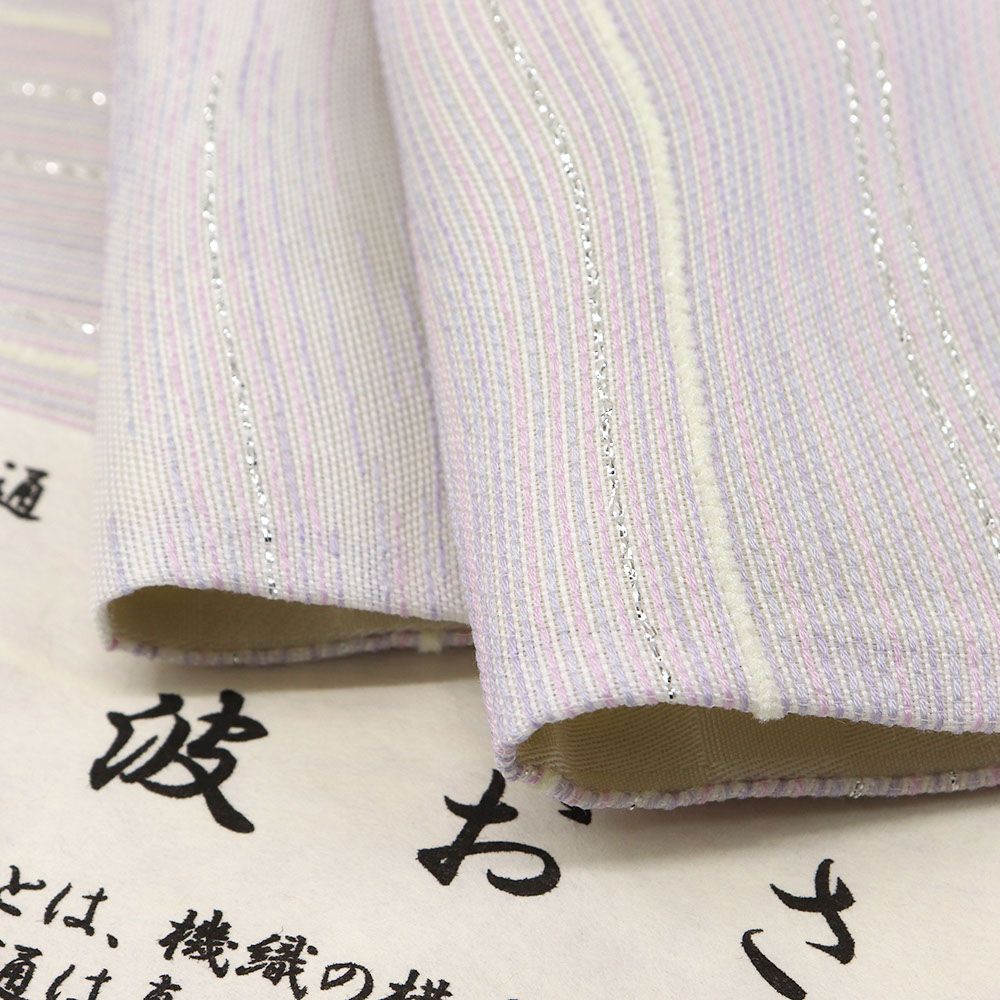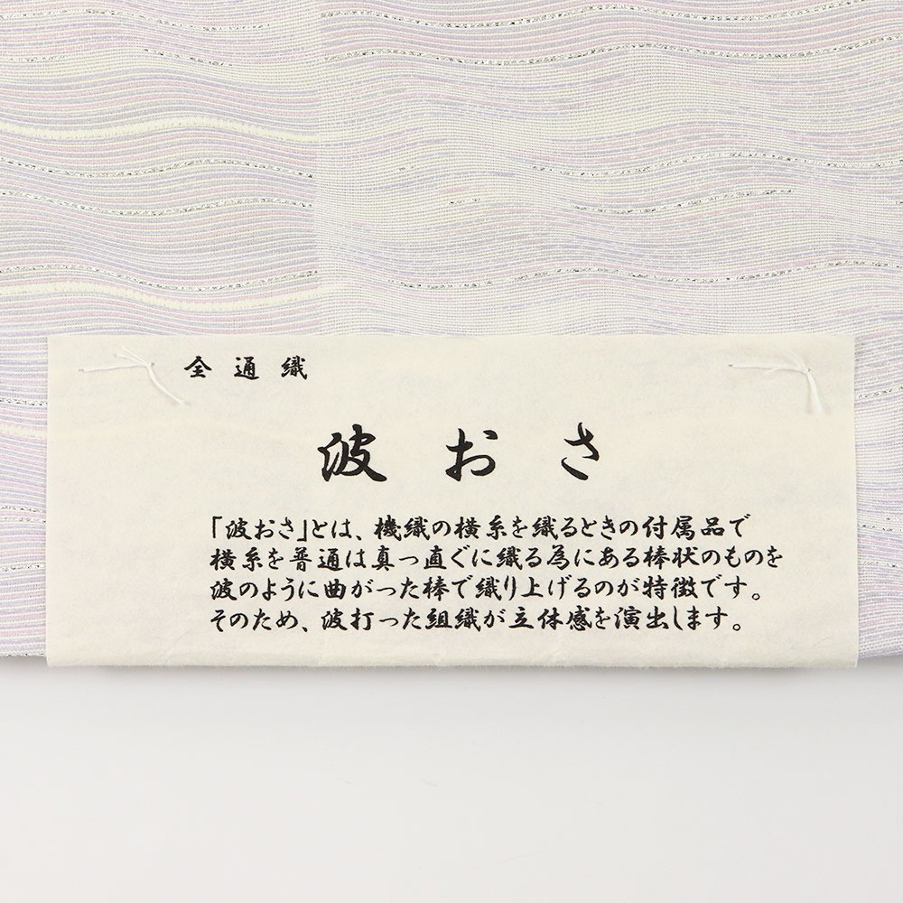 波のようによろけた織で隙間を作り奥行きを生み出す「波筬織(筬波織)」という技術で織り上げられた逸品。しなやかな曲線を描く生地には、流れるような光沢と、吸い込まれるような奥行きが生まれています。