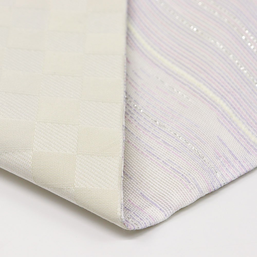 薄藤や白、箔糸で表現された市松模様は、表情豊かな生地感と相まってグラフィカルで現代的な仕上がりになっています。