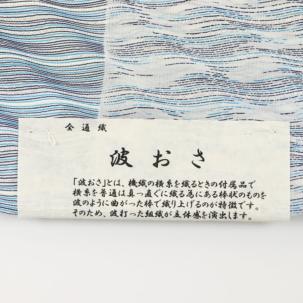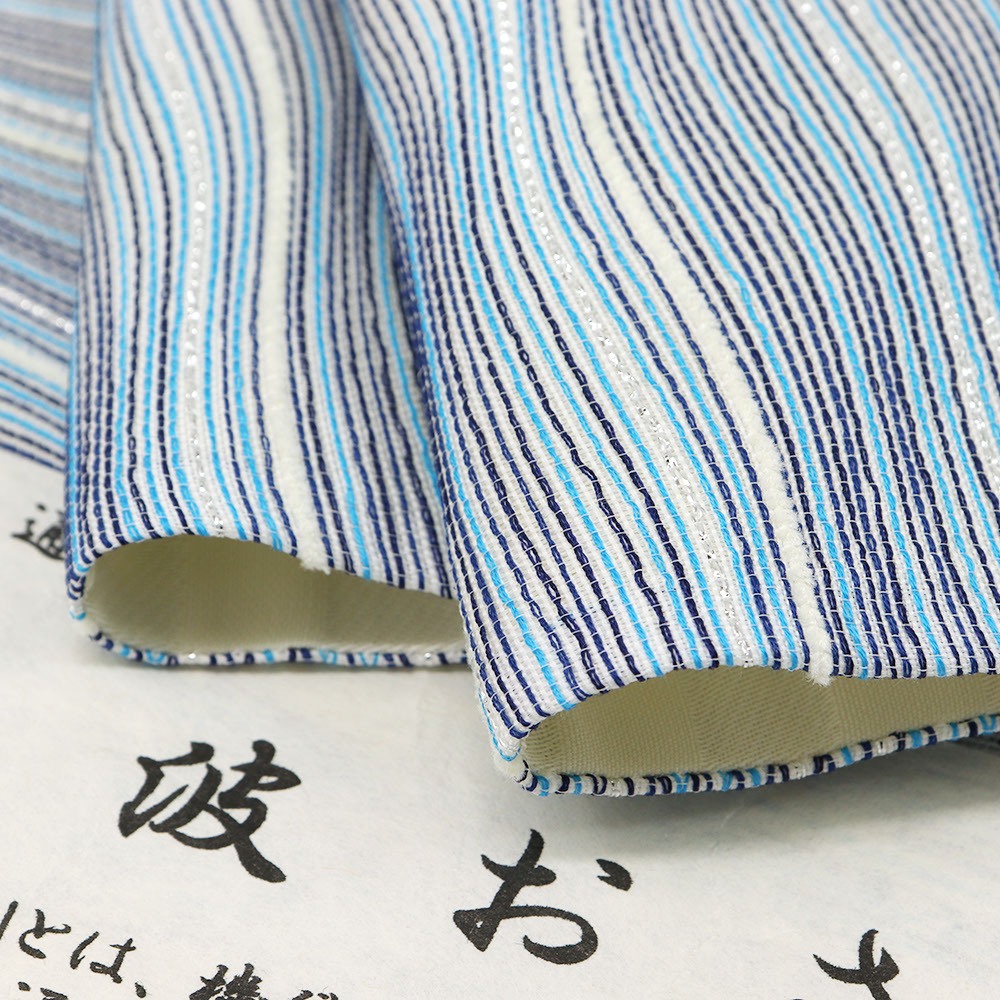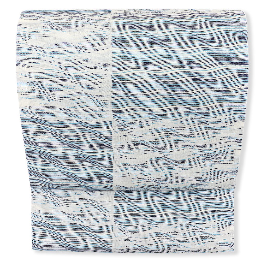 波のようによろけた織で隙間を作り奥行きを生み出す「波筬織(筬波織)」という技術で織り上げられた逸品。しなやかな曲線を描く生地には、流れるような光沢と、吸い込まれるような奥行きが生まれています。