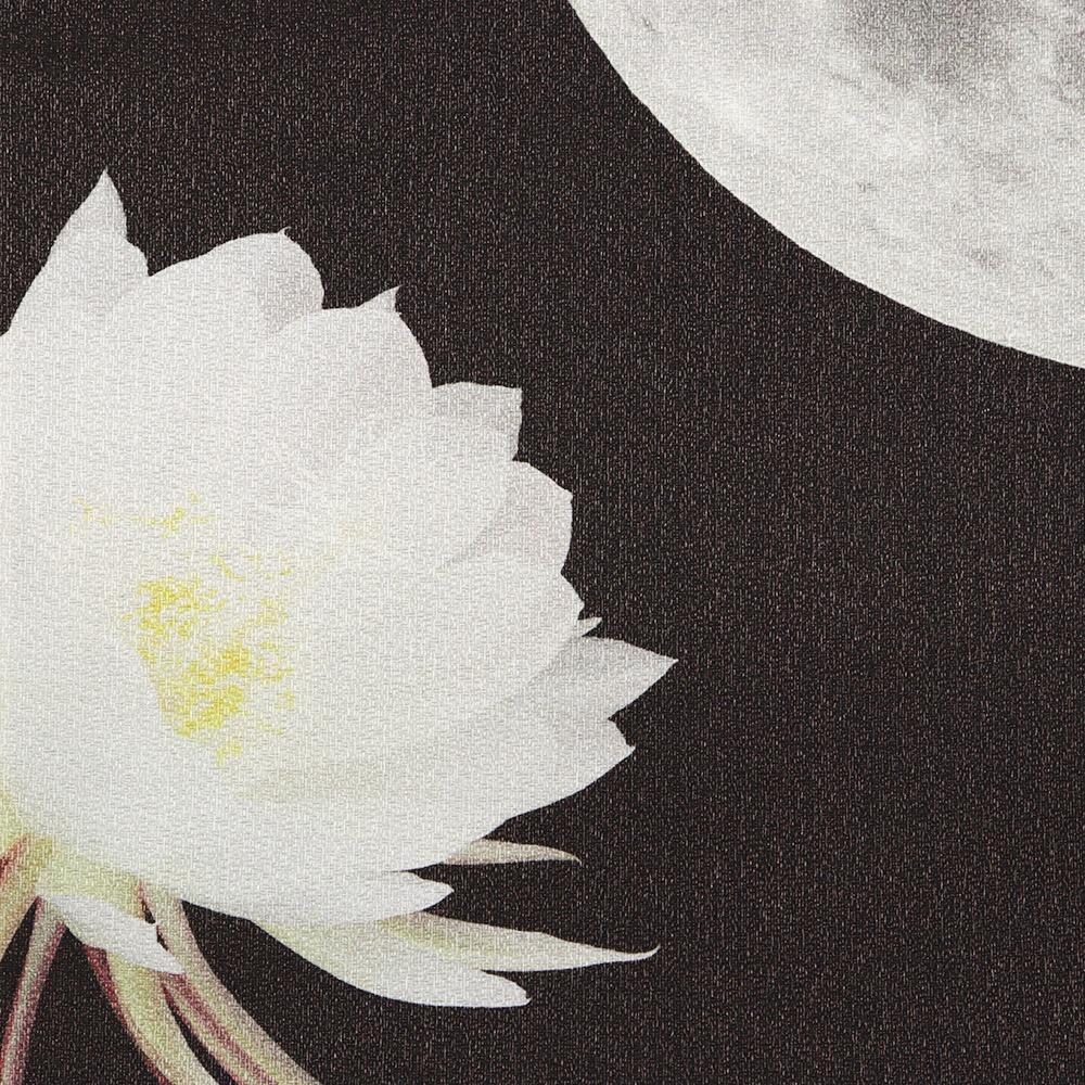 透明感のある花、リアルな月のクレーター、インクジェットならではの微細な表現を発揮した仕上がりは、深々と更けていく夜の美しさを存分に写し出しています。