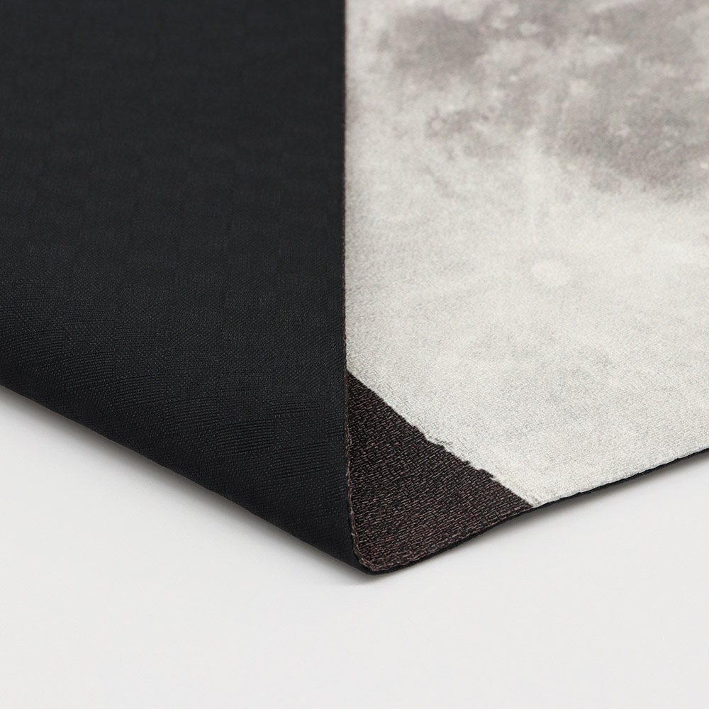 帯地は絹と綿、ポリエステルを混紡しており、絹の美しさを保ちつつ、耐久性に優れた仕上がりになっています。