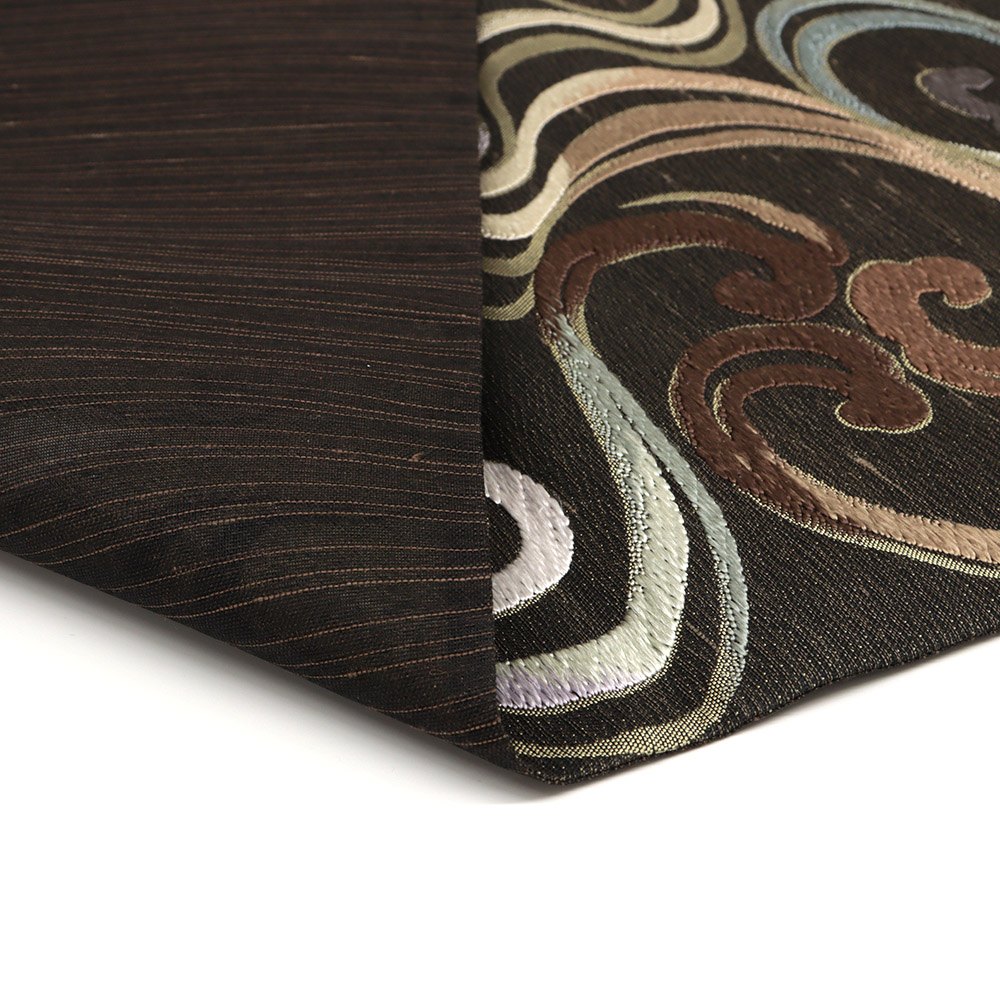 二匹の蚕が作り出す希少な繭「玉繭」から挽いた玉糸で製織する玉繭紬地に、波濤文様を織り描いた一本。