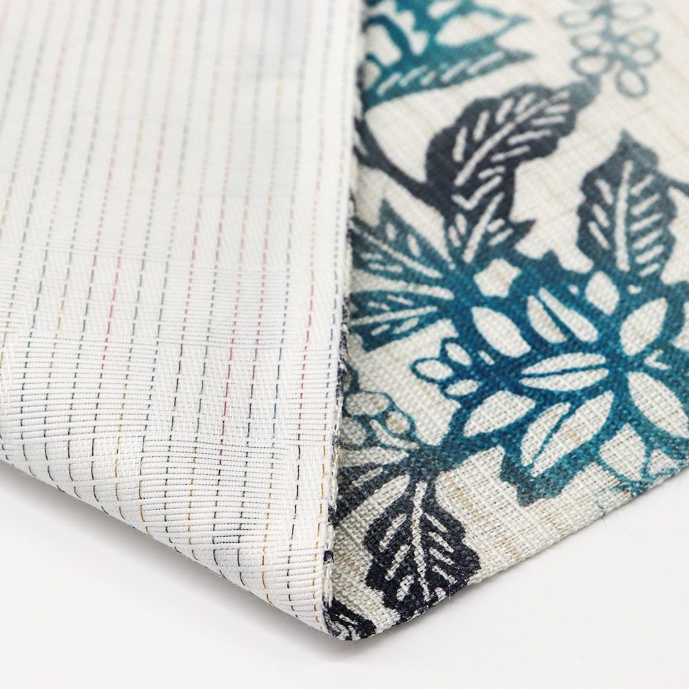 花と葉を同時に楽しめる花唐草の柄行きは、無地場の多い着物と合わせていただくとその魅力がよりいっそう引き立つことでしょう。ムガシルクならではの手触りも同時にお楽しみいただけます。