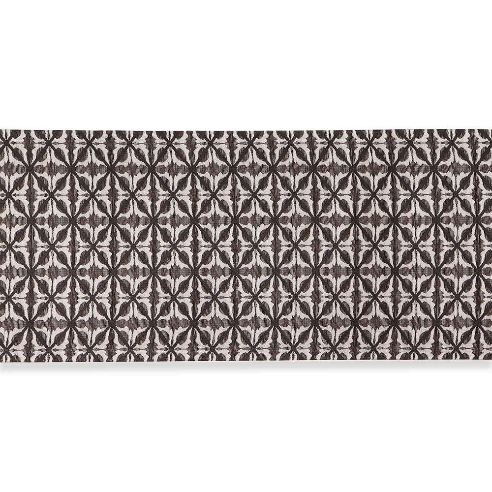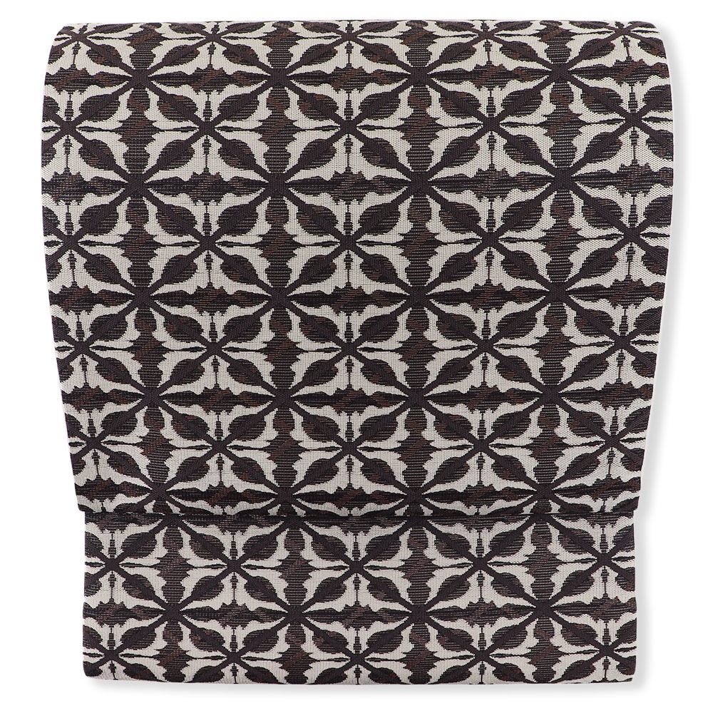 微かな透け感を持った紗生地に、花格子を織り上げた一本。絶え間ない総柄ながら、落ち着いた色合わせでモダンな仕上がりになっています。ハリのある紗生地で、腹前やお太鼓の形が決まりやすいのもポイントです。