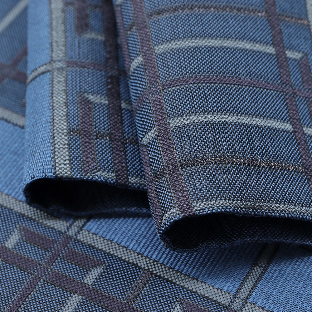 「れんじ組子」と名付けられたこちらの柄行きは、連子窓のような直線的な模様を織り出したシャープなデザインです。同じ柄の中でも色糸を巧みに使い分けているので、陰影が生まれたような立体的な仕上がりに。シックでハイセンスなおしゃれ帯をめざす【洛陽織物】ならではの、こだわりと美しさが全面に表現されている一本です。