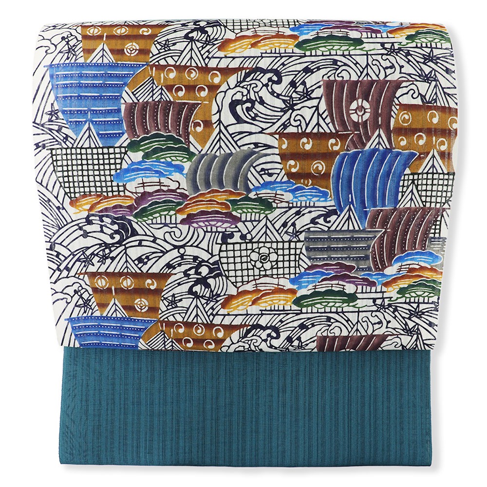 琉球紅型夏九寸名古屋帯(帆船)【城間栄喜/栄順/栄市】