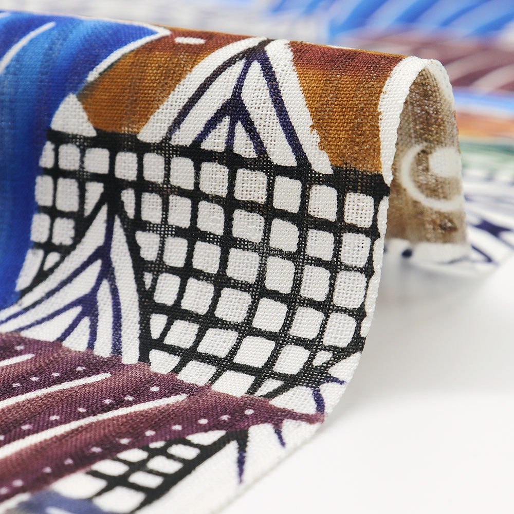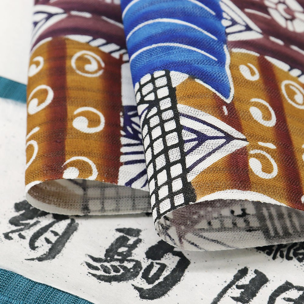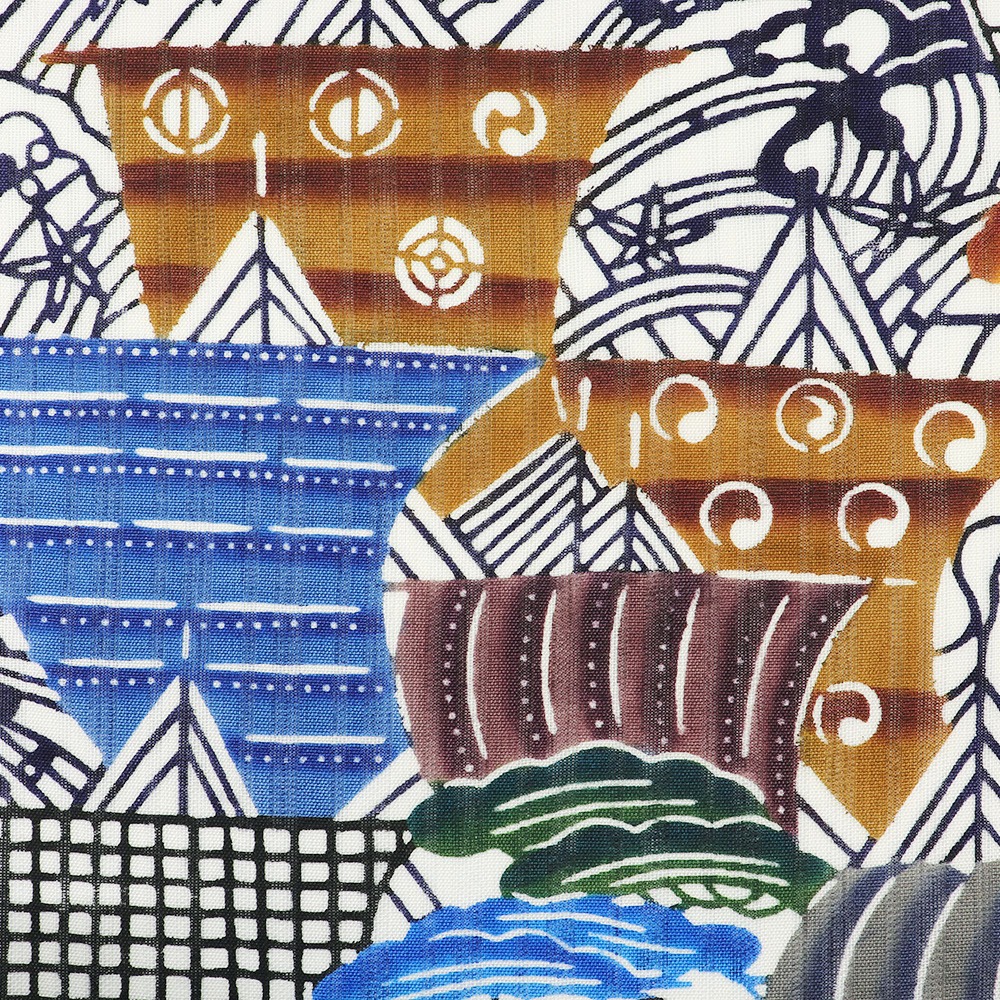 帆船や交易船を文様に落とし込みパターン柄で表現したこちらは、紅型の生き生きとした柄行きはそのままに、都会的でモダンな雰囲気も感じられます。