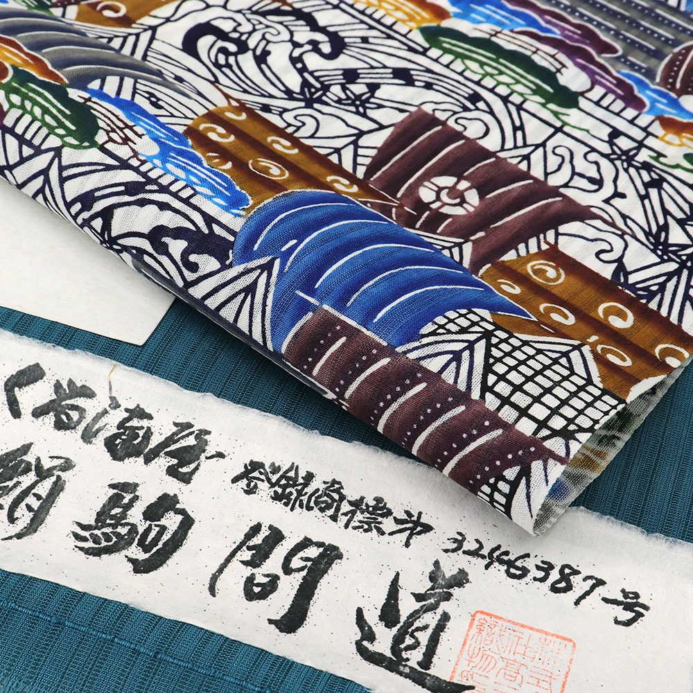 紅型三大宗家の一家である城間家の14代目城間栄喜氏、15代目城間栄順氏、16代目城間栄市氏、三代の技術が合わさった琉球紅型九寸帯。