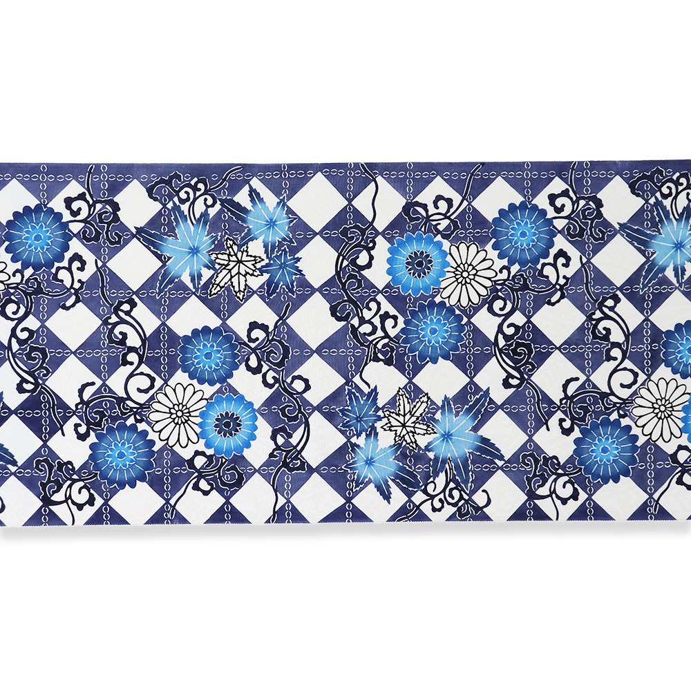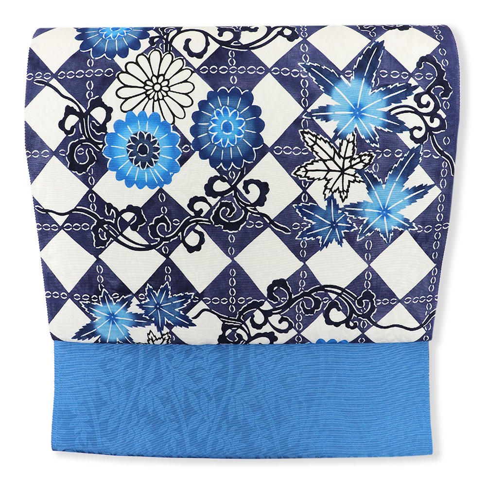 琉球紅型九寸名古屋帯(市松に菊かえで)【城間栄順】