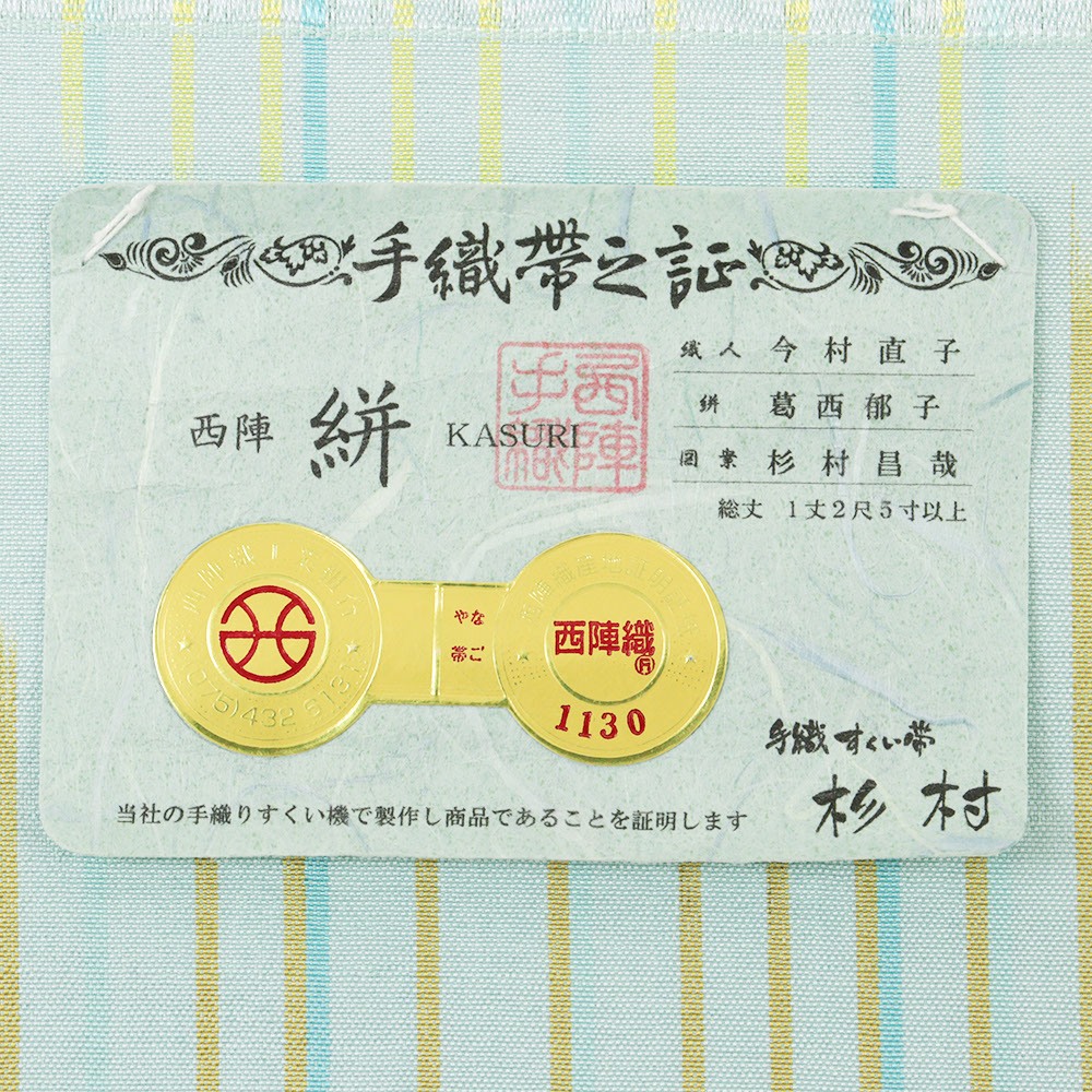 西陣商標登録番号「1130」【杉村】謹製の九寸名古屋帯です。