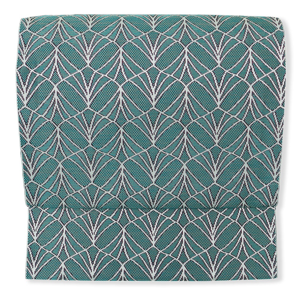 こちらは、アールデコを想起させる扇状のパターン柄が気品ある雰囲気とモダンなテイストを演出。裏側にもその美しい模様が表れるのも経錦持つ特徴のひとつです。絹糸には、ラグジュアリーブランドにも起用されていると言われるブラタクシルクを使用。高品質な生地で経錦の美しさをご堪能ください。