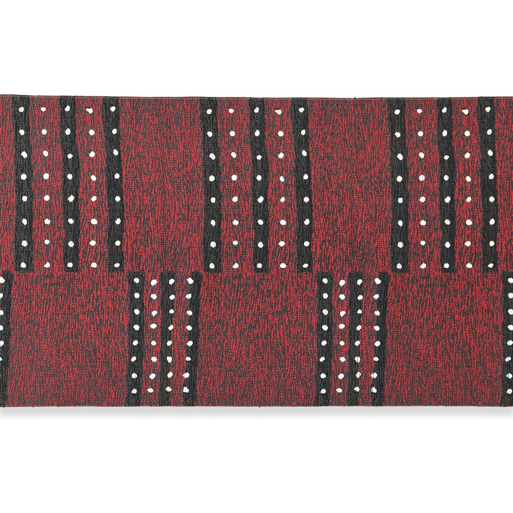 五倍子、楊梅(山桃)、蘇芳を使用した染料で染められた一本。淡色から鮮色まで、表情豊かな色彩で織り柄を巧みに表現しています。