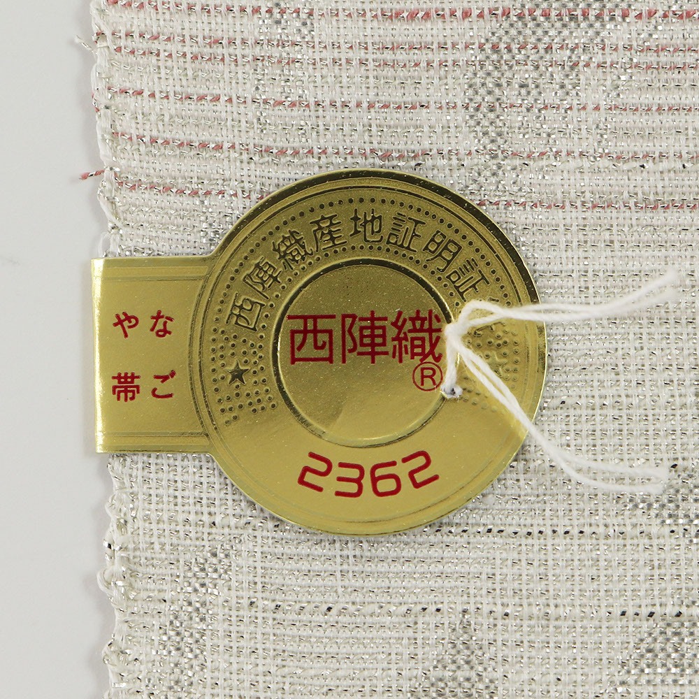 西陣商標登録番号「2362」、昭和38年創業の西陣織の老舗織元【大光織物】の九寸名古屋帯です。