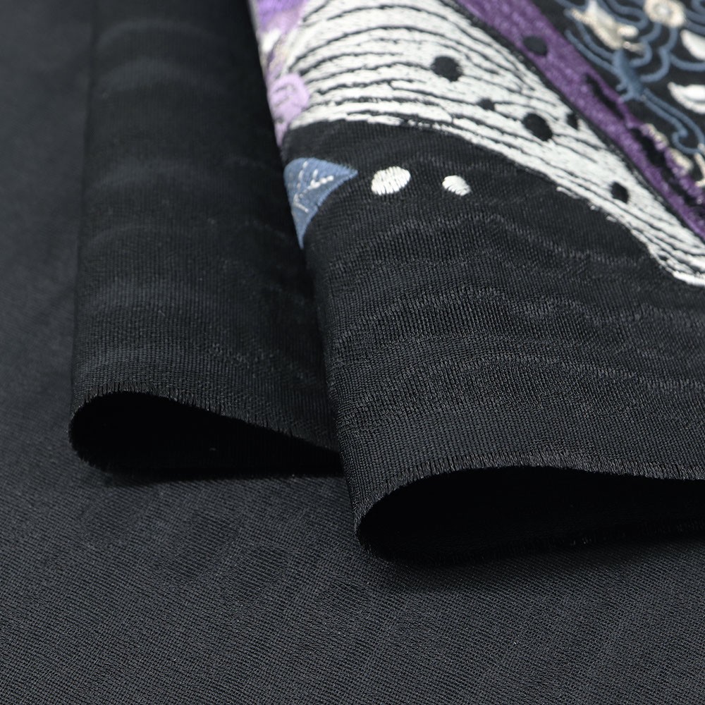 ユニーク柄でインパクトはありつつも、お太鼓柄なのでシンプルに決まるのがポイント。2パターンを楽しめる腹前で気分を変えつつ、無地場を活かしたコーデから刺繍柄を活かしたコーデまで、幅広い組み合わせに寄り添ってくれそうです。