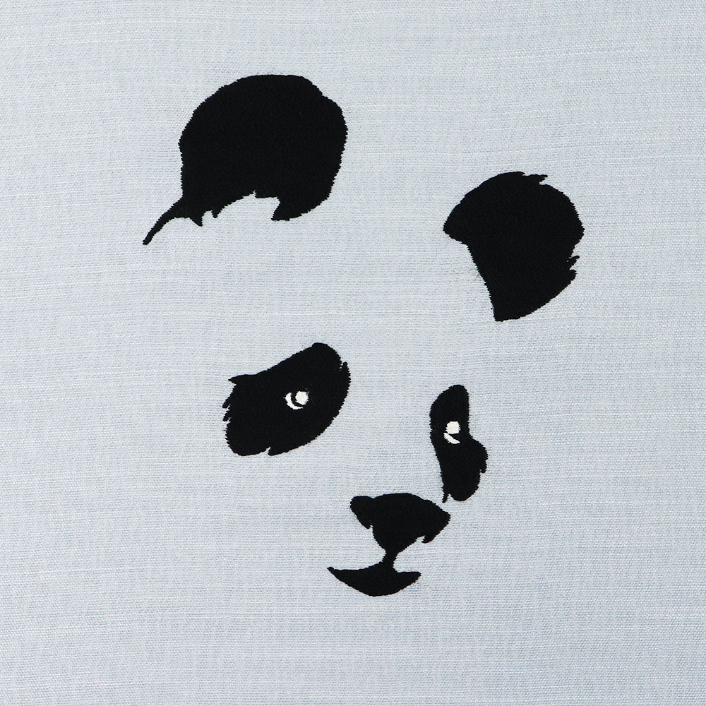 パンダの顔を大きく表現したこちらも、手刺繍によるもの。腹前のころころ転がるパンダも合わせて、その可愛らしさにご注目くださいね。
