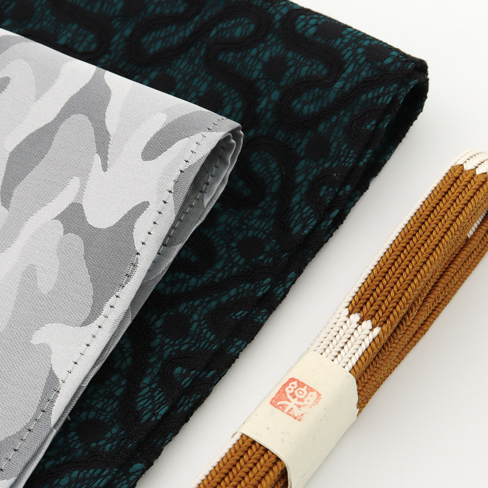 ▼同柄の帯揚もございます。>>ボンディングレース帯揚:ブラック×グリーン【いち利モールオリジナル】<通常価格:3300円>