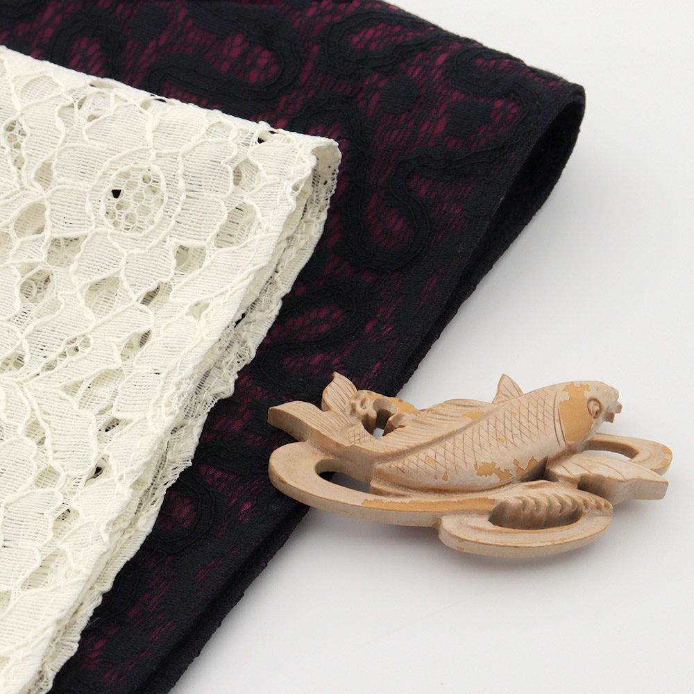 躍動感ある鯉が彫られたツゲ製の一品です。繊細な細工と曲線美、立体感により確かな存在感をはなちます。紬や木綿着物に合わせれば、木のあたたかみをとことん生かしたコーディネートを楽しめそうです。風情あふれるアンティーク帯留をぜひコレクションしてみませんか。