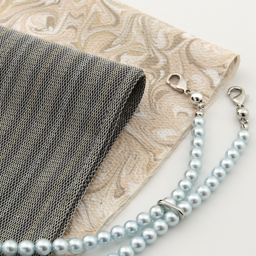 さらに、2本のパール紐を束ねている金具は取り外しが可能で、ループタイのように長さを自由に調節していただけます◎