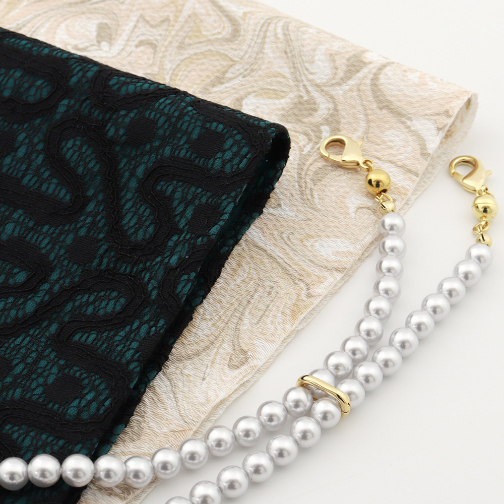 さらに、2本のパール紐を束ねている金具は取り外しが可能で、ループタイのように長さを自由に調節していただけます◎