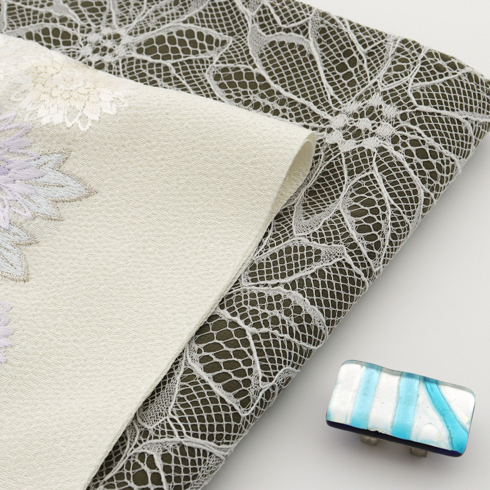 ◆同柄の半衿もございます。>ボンディングレース半衿:グレー×カーキ【いち利モールオリジナル】<通常価格:8800円>